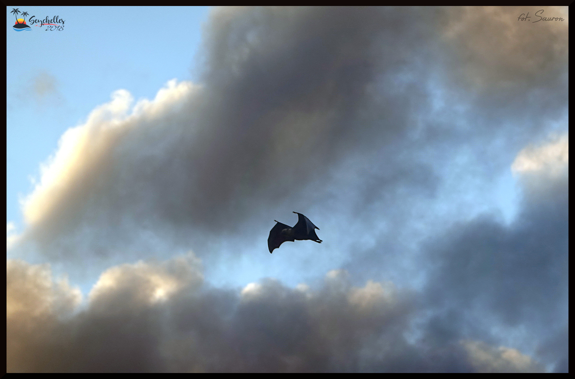 Na koniec, nietoperz na tle nieba z promieniami zachodzącego słońca. Nietoperzy (dużych) było sporo - więcej niż dużych ptaków.
