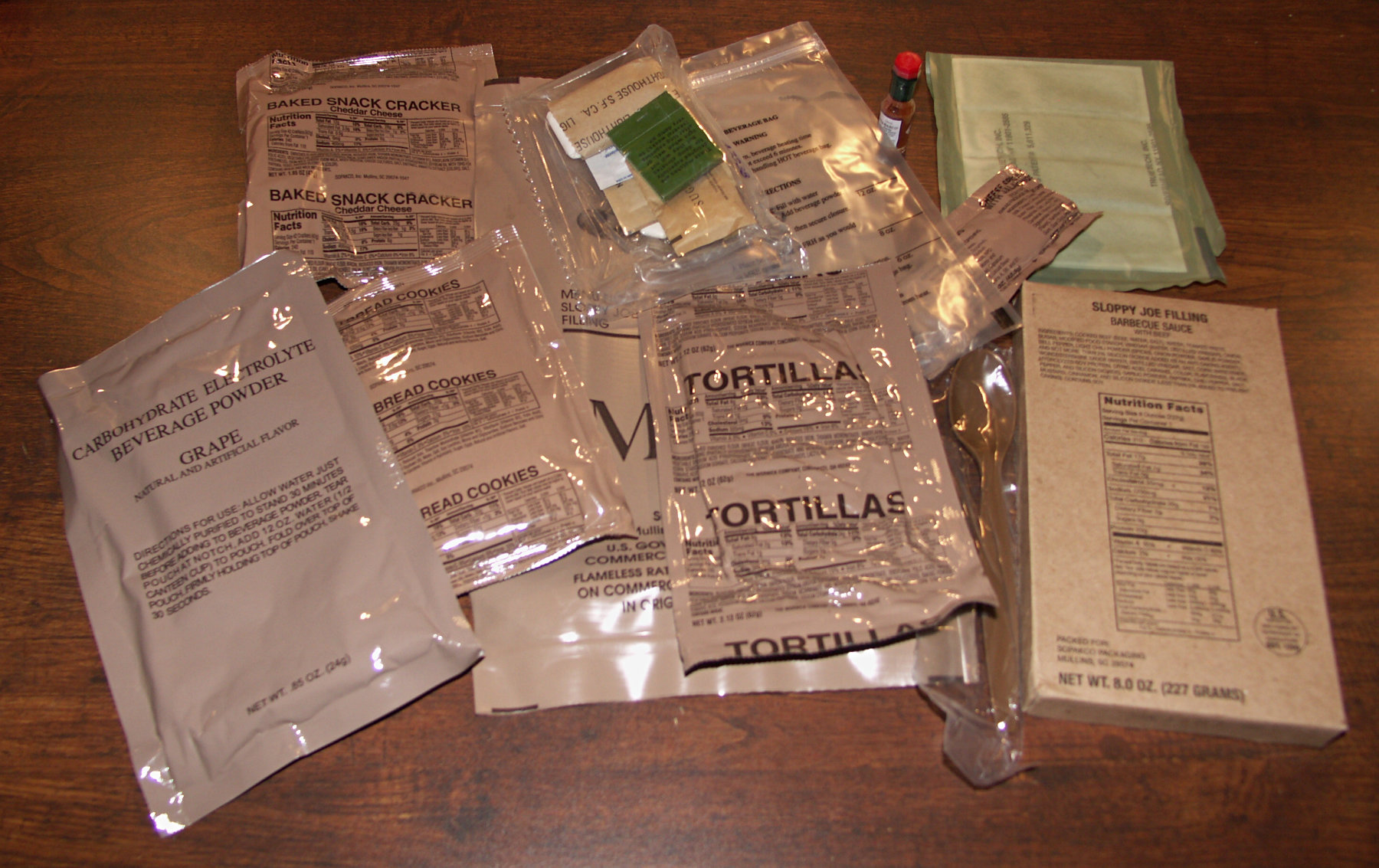 One MRE unpacked. From left