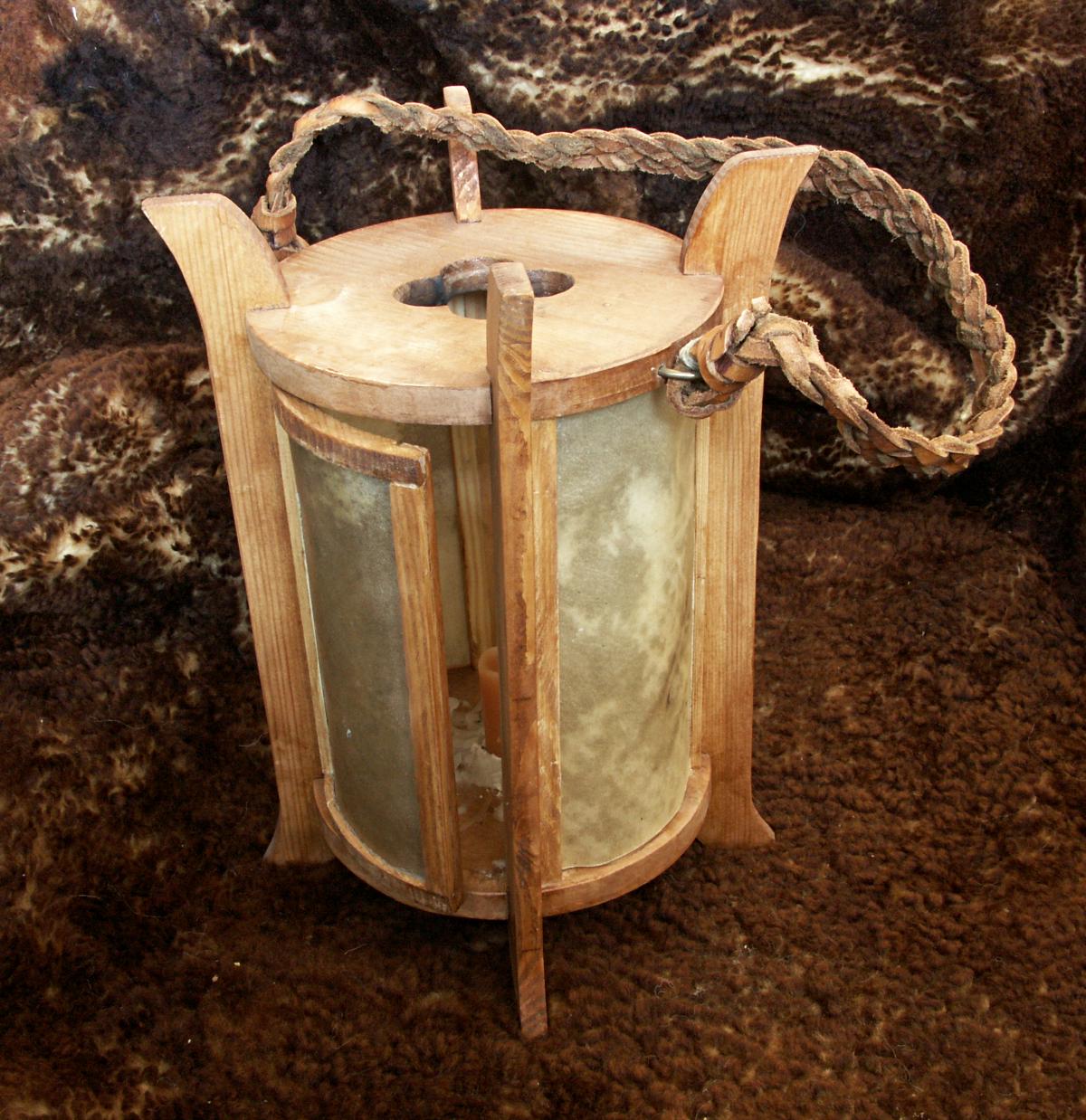 Latarenka otwierana z drewna i pergaminu (skóry).